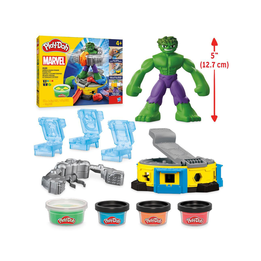 قم بتنشيط خيال الأطفال مع مجموعة لعب Play-Doh Marvel Hulk Smash & Squish! تتضمن لعبة Hulk هذه مجسم Hulk قابل للانحناء مقاس 5 بوصات (12.7 سم) وملحقات Play-Doh الرائعة التي تتيح للأطفال تمثيل قصص ملحمية. استخدم مكبس Play-Doh الذي يدور 360 درجة لتشكيل دبابات Play-Doh والشاحنات وشخصية MODOK والعوارض I والأنابيب والمزيد. جهز شخصية Hulk ببدلة القوة الخاصة به حتى يتمكن من تحطيم أشكال Play-Doh وسحقها! تأتي مجموعة Play-Doh هذه مع 5 أونصات (142 جم) من مركب النمذجة. تُعد ألعاب الخيال مثل مجموعة Play-Doh Marvel هدايا رائعة للأولاد والبنات الذين يحبون ألعاب Hulk وشخصيات الأبطال الخارقين والفنون والحرف اليدوية للأطفال وألعاب التظاهر.