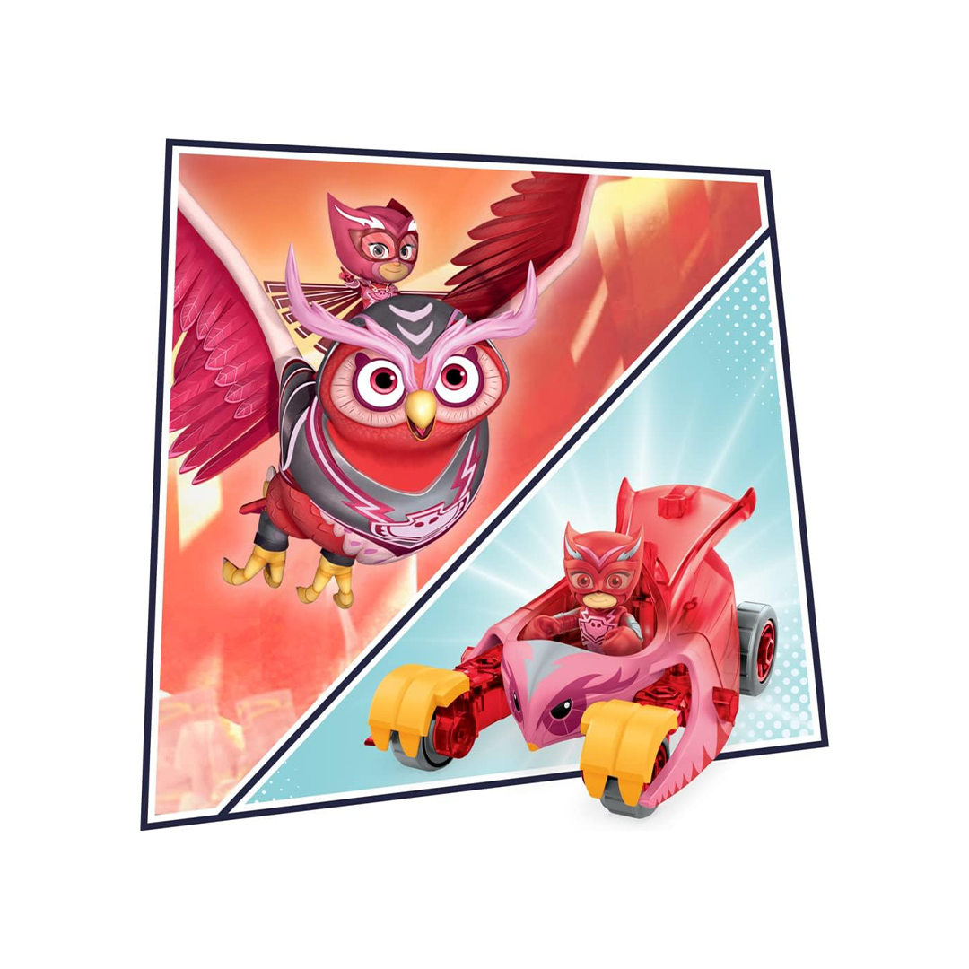 حان وقت أن تكون بطلاً! يمكن للأطفال في سن ما قبل المدرسة أن ينطلقوا نحو الإنقاذ باستخدام لعبة مركبة Animal Power Owl Glider من PJ Masks. تم تزيين لعبة Owl Glider بخطوط سباق الحيوانات لتبدو مثل Eagle Owl PJ Rider الخاصة بـ Owlette، وتأتي مع شخصية Owlette المتحركة مرتدية معدات الركوب وخوذة السباق. تجلس شخصية Owlette في قمرة القيادة المفتوحة للسيارة، وسيحب الأطفال تمثيل لحظاتهم المفضلة من العرض مع هذه اللعبة الجاهزة للحركة. تعمل الشخصية مع ألعاب PJ Masks المجهزة بـ Hasbro Hero ID (تباع كل منها على حدة، حسب التوافر)، والتي تتعرف على شخصيات PJ Masks المتوافقة مع Hero ID وتتفاعل معها باستخدام الأضواء أو الأصوات أو كليهما. تمثل لعبة سيارة Owlette هذه هدية ممتعة للأولاد والبنات من سن 3 سنوات فما فوق الذين يحبون المغامرات الليلية