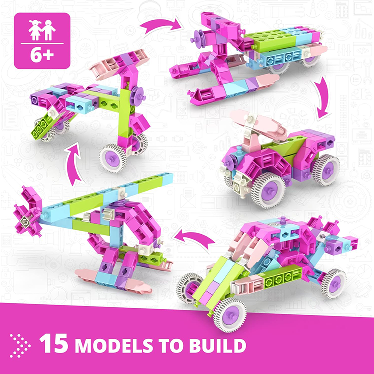 ابنِ ما يصل إلى 15 نموذجًا عمليًا مع تعليمات إضافية عبر الإنترنت. تعليمات البناء سهلة المتابعة تجعل التجميع ممتعًا وسريعًا.