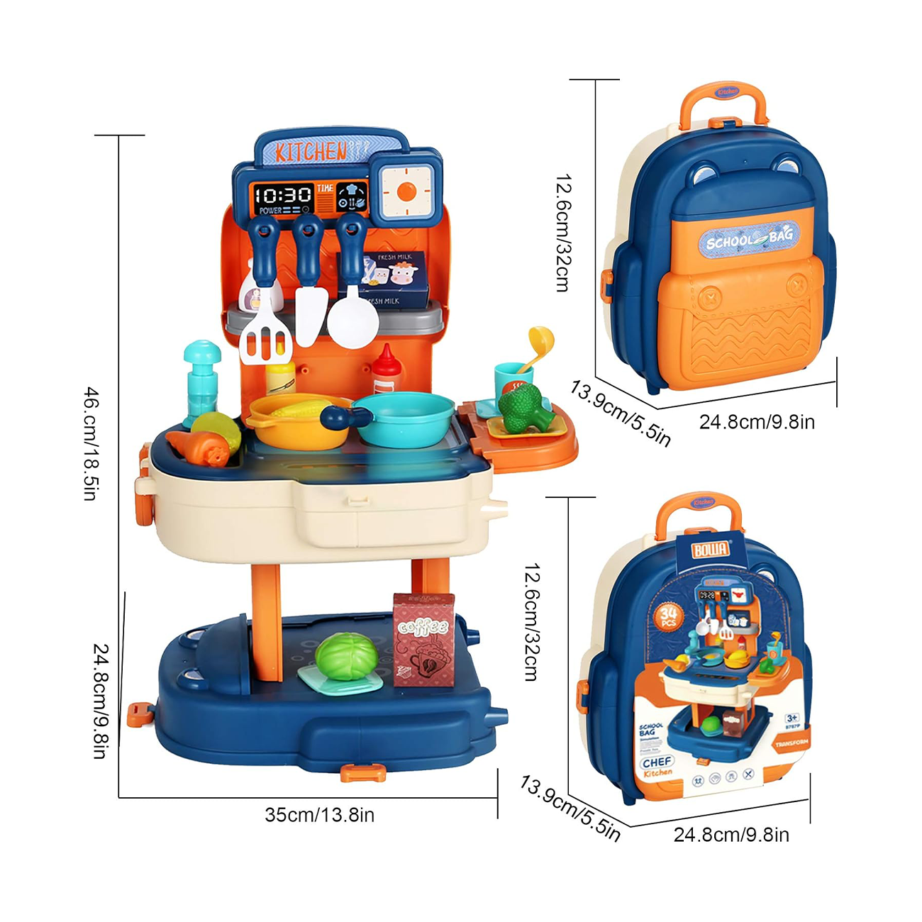 حقيبة ظهر 2 في 1: مجموعة اللعب التظاهري الخاصة بنا هي حقيبة ظهر يمكن أن تتحول إلى مطبخ. تحتوي على ثلاثة أوضاع، والتي يمكن تحويلها إلى حقيبة يد أو حقيبة ظهر أو طاولة أدوات المطبخ. دع أطفالك يلعبون دور الطاهي ويتعلم كيفية استخدام مجموعة ألعاب المطبخ والطبخ. تخزين ذكي وسهل التبديل. لا يوجد حد من المرح، جرب المرح أثناء التنقل.