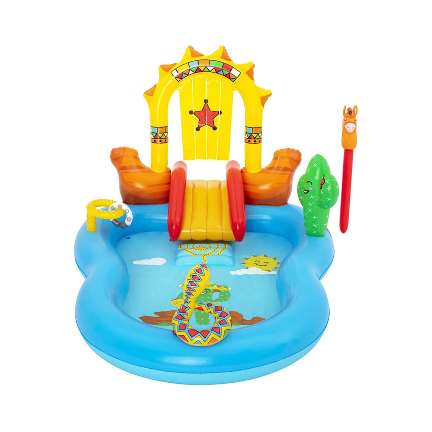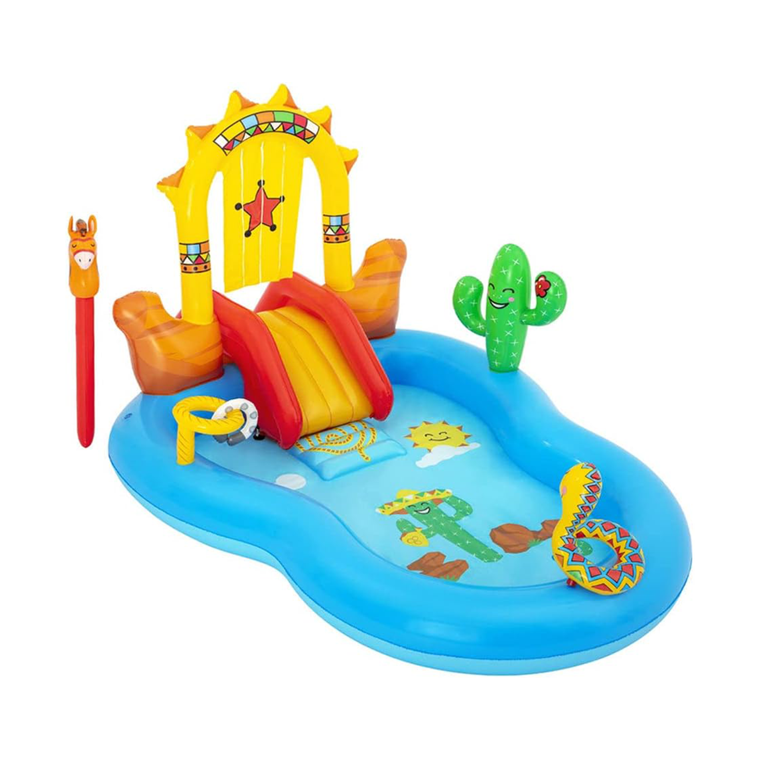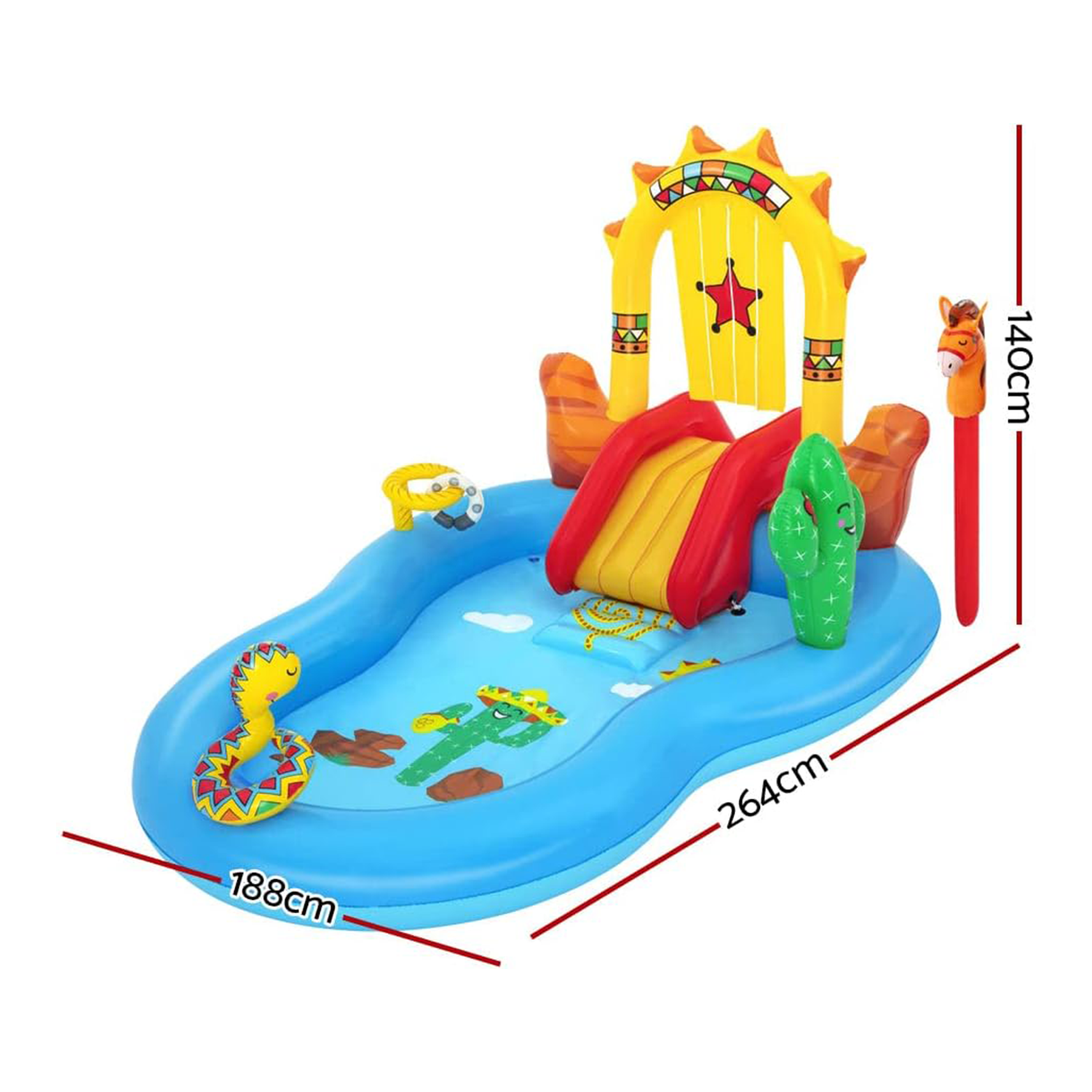 انطلق في رحلة إلى الغرب المتوحش مع مركز اللعب من Bestway، يمكن للأطفال استخدام خيالهم للتظاهر بأنهم رعاة بقر حقيقيون. سعة الماء: 278 لترًا
