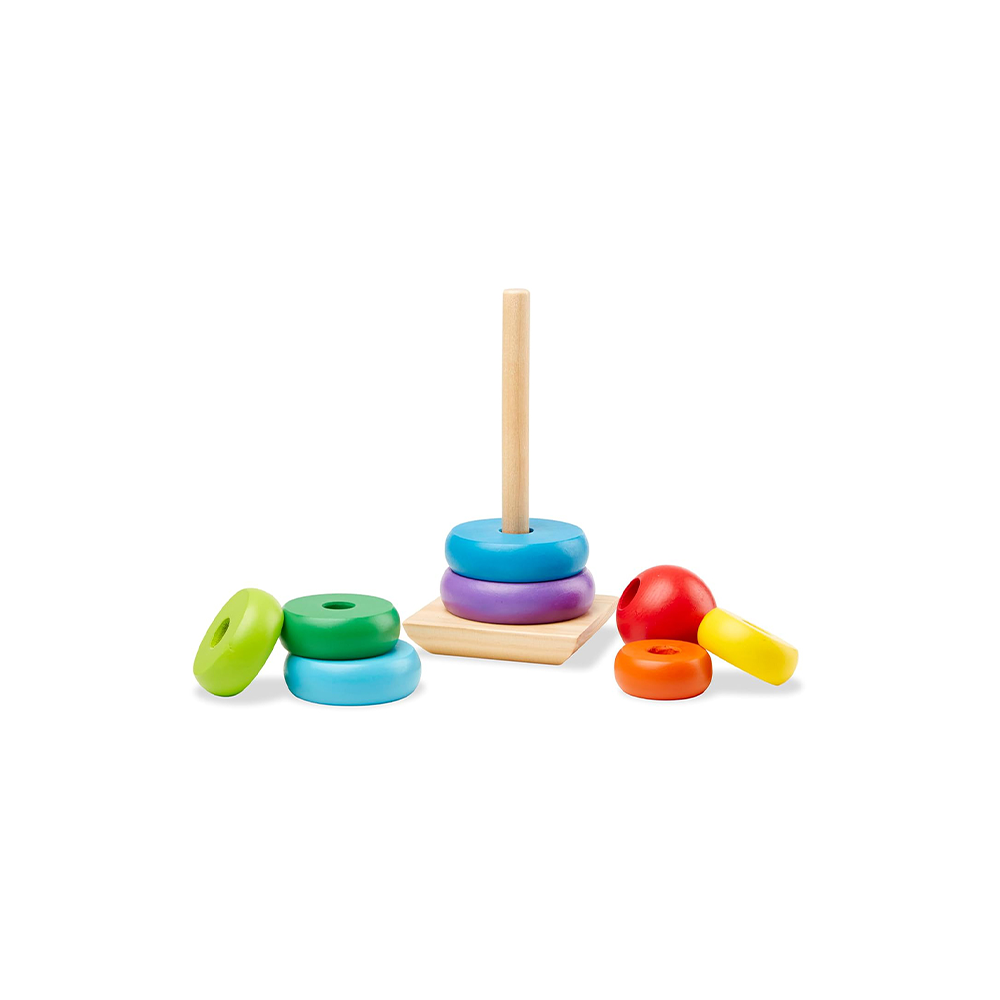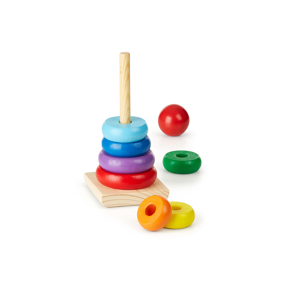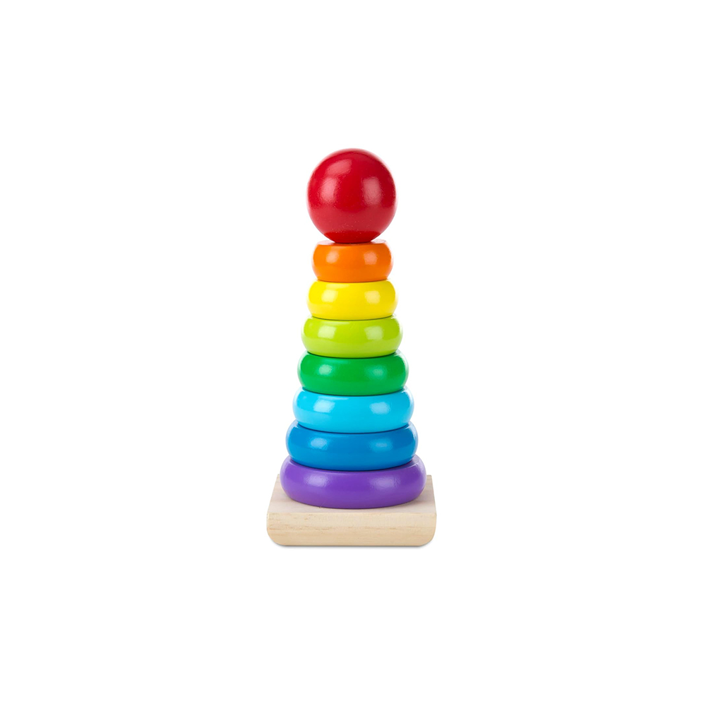 لعبة تجميع كلاسيكية تعليمية للأطفال الصغار: تتميز لعبة التجميع الكلاسيكية بألوان قوس قزح من ميليسا آند دوغ بـ 8 قطع خشبية ناعمة وسهلة الإمساك، تُرص على قاعدة هزازة من الخشب الصلب.