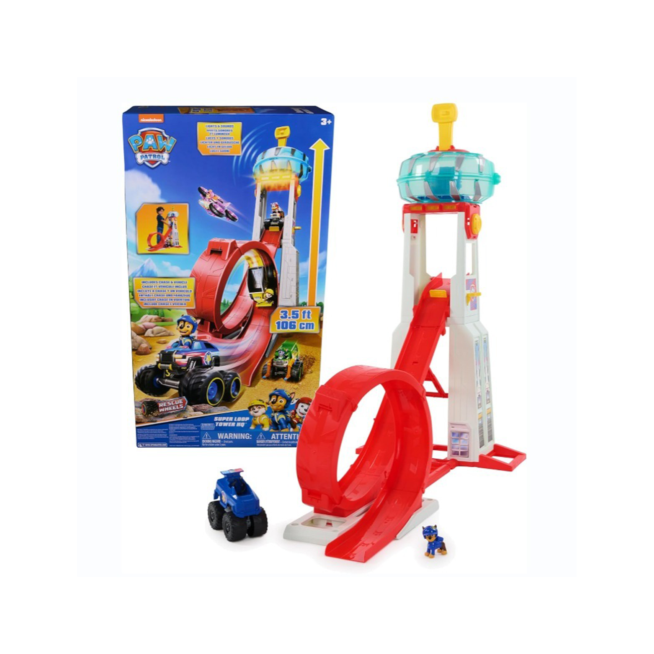 استعد لمهام إنقاذ مثيرة عالية السرعة مع تشيس وشاحنته الوحشية ذات طابع سيارة الشرطة ذات العجلات الكبيرة، في مقر برج الإنقاذ Super Loop الجديد كليًا من PAW Patrol: Rescue Wheels. – يبلغ ارتفاع برج PAW Patrol الرائع هذا حوالي 3.5 قدم، مع أضواء وأصوات، لتجربة غامرة. – هذا هو أكبر برج PAW Patrol حتى الآن، مع منحدر حلقي عملاق ومركز قيادة يفتح لاستيعاب 6 جراء ومواقف سيارات PAW Patrol الخاصة بهم (تباع كل منها على حدة). – أحضر الإثارة إلى المنزل مع مقر PAW Patrol: Rescue Wheels Super Loop. – يتضمن: مجموعة لعب واحدة، مركبة واحدة، شخصية مطاردة واحدة.