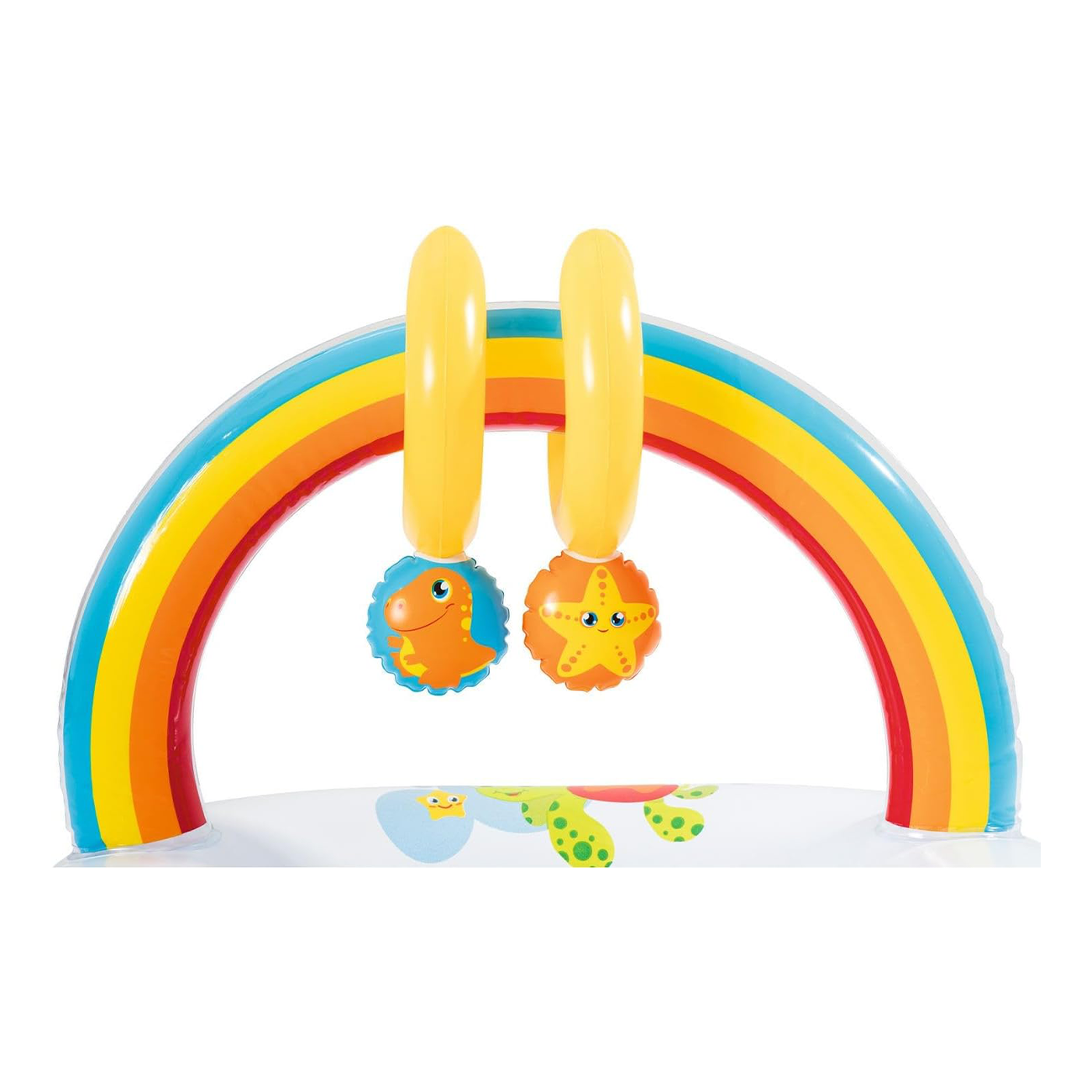 قوس قوس قزح مع ألعاب معلقة قابلة للضغط والتي من المؤكد أن الصغار سيحبونها