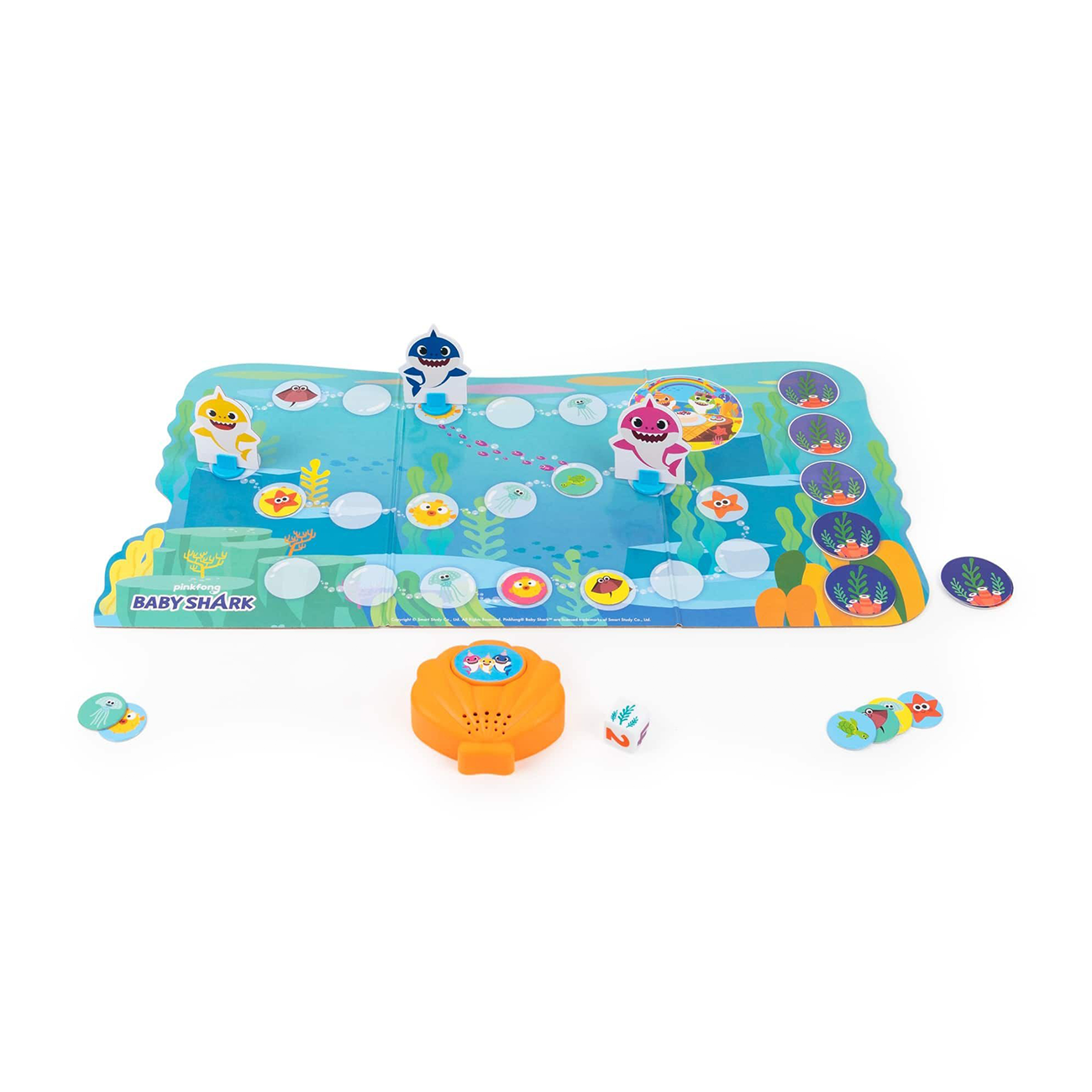 يمكن للأطفال اللعب لجمع كل أصدقائهم تحت الماء مع لعبة Pinkfong Baby Shark Party في Reef Game – استمع إلى الصدفة للحصول على اتجاهات لنقل أحد أفراد الأسرة – على طول الطريق، احصل على أكبر عدد ممكن من الأصدقاء للانضمام إلى الحفلة – الوصول إلى المكان قبل أن تجرف عاصفة الأعشاب البحرية كل شيء – لعبة مثالية من 2 إلى 4 لاعبين