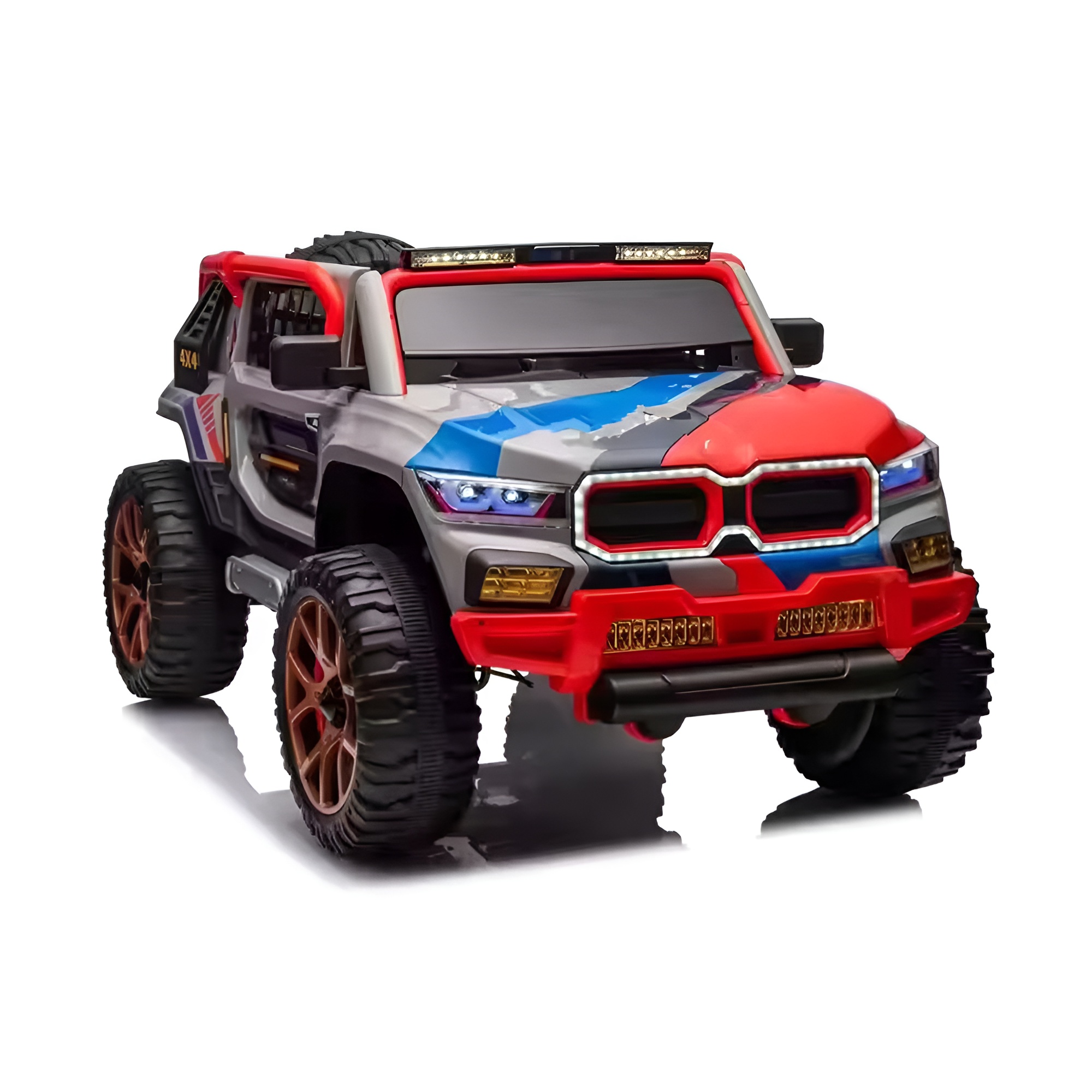تكفي من عمر سنه الي 5 سنوات .4 موتور 12 فولت Mp3player بلوتوث تكفي شخصين صندوق خلفي كرسي جلد .أصوات واضاءه أماميه وخلفيه تمشي بريموت وبدون ريموت