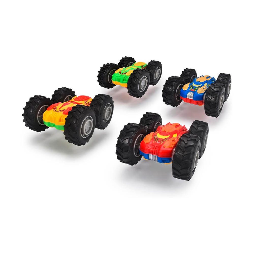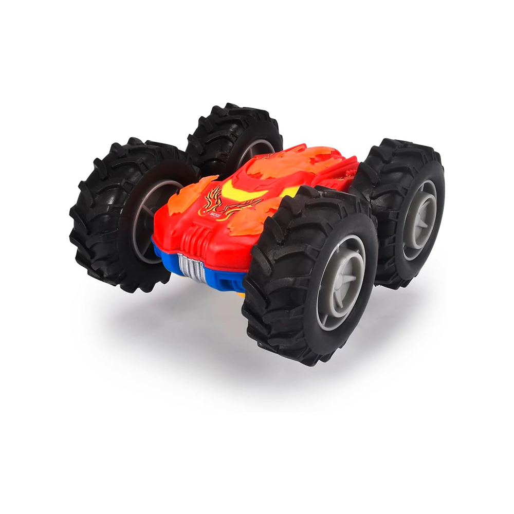 مركبة انقلاب كبيرة بحجم 9 سممزودة بمحرك احتكاك: وهذا يعني أنه إذا قمت بدفع السيارة بقوة للأمام، فإن محرك الاحتكاك يضمن قيادة السيارة لفترة أطولستتدحرج مركبتك المجنونة المتقلبة فوق العوائق أو الجدران وتواصل طريقها.التوصية العمرية: 3 +