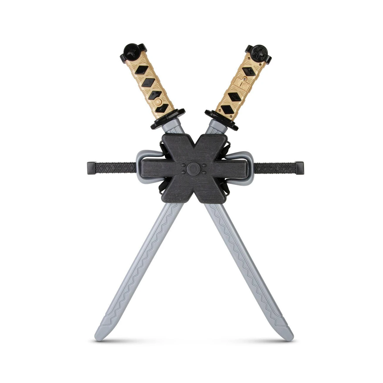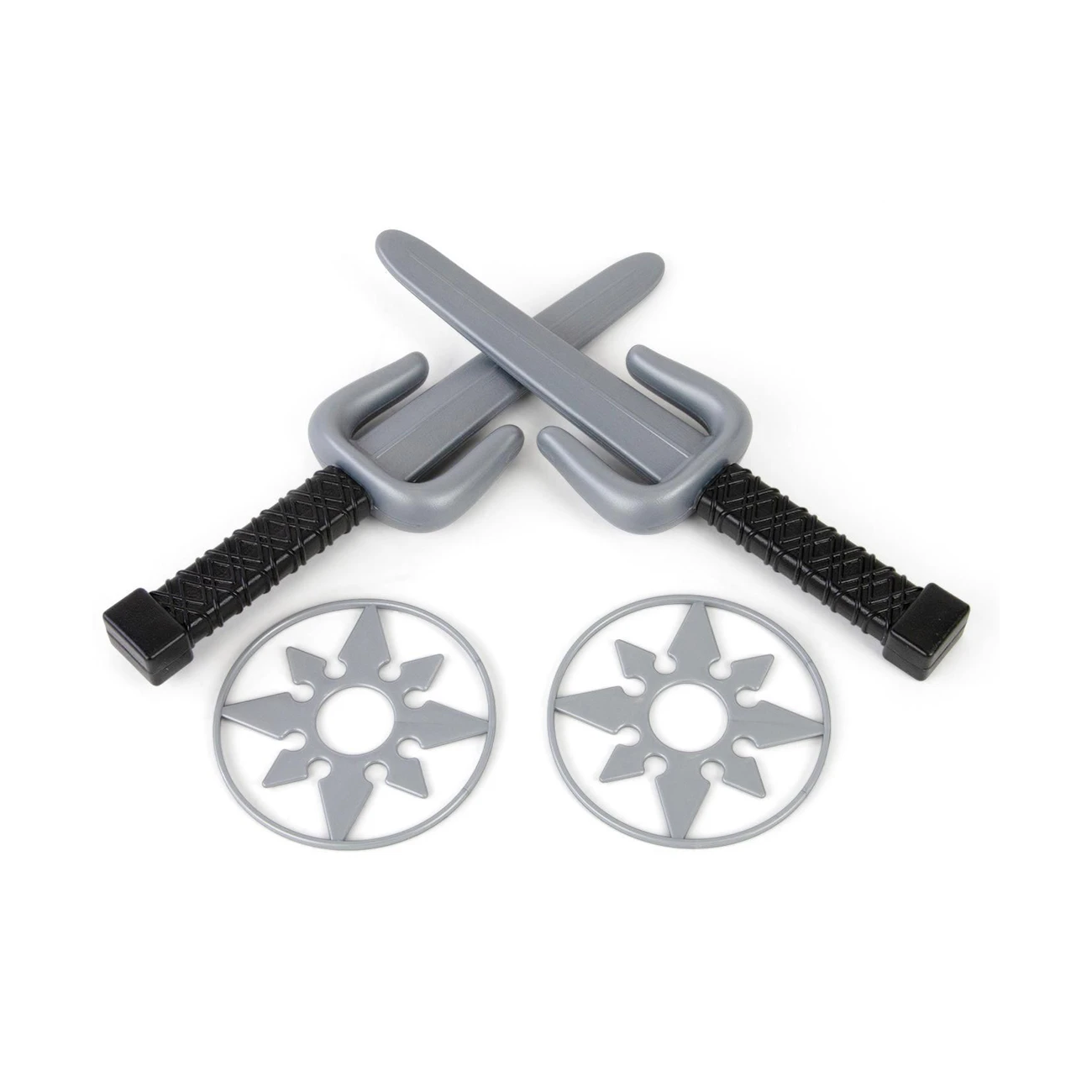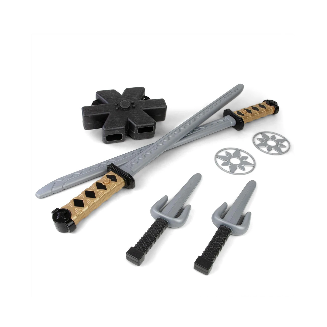 Become a true ninja with the Ninja Adventure Force playset! Your little one will have a blast fighting monsters and villains with this complete set. Equipped with everything he needs to face any situation, your little ninja will carry seven weapons to defend against any attack. He'll throw ninja stars, block attacks with two daggers, and defeat his enemies with two long swords. You can attach all seven weapons to his back using the included sword rack.