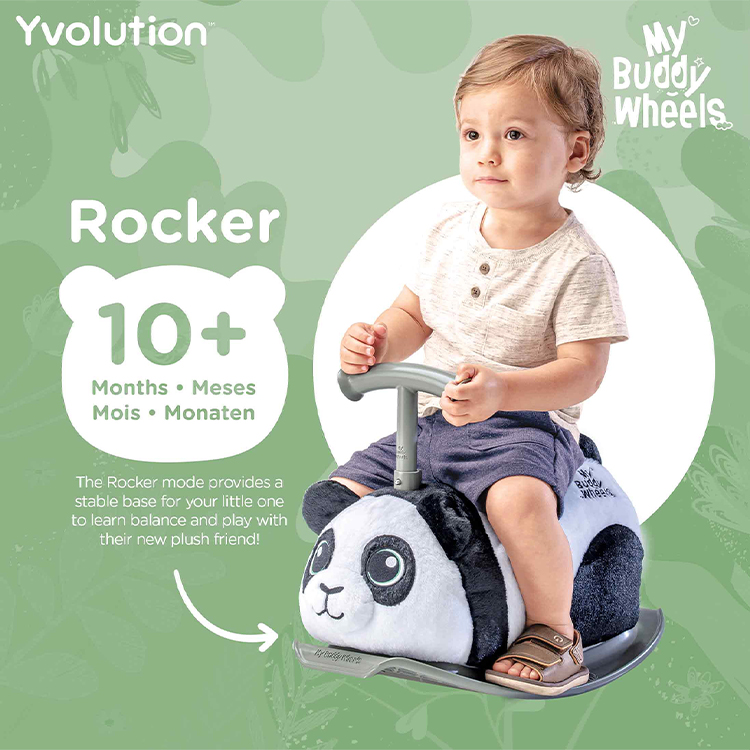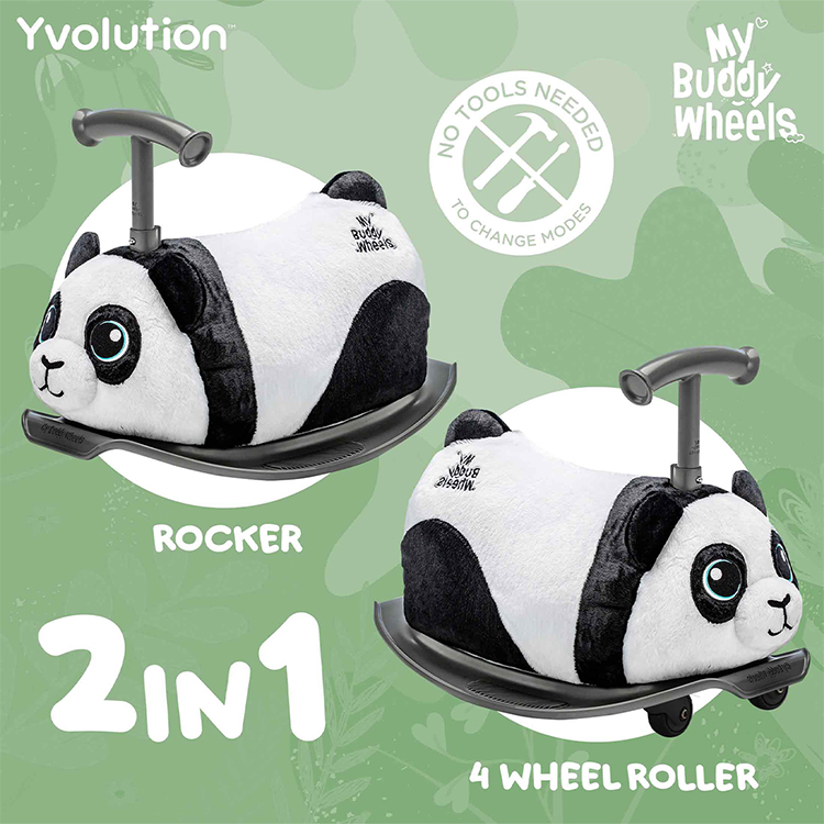 Two Modes: The My Buddy Wheels Rock’n’Roller can be used as a rocker from as early as 10 months old, and later as a roller chair by adding 360-degree swivel wheels to the base.