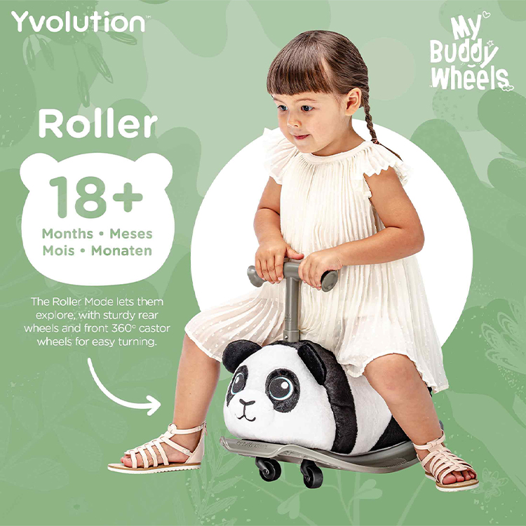 Roller Mode: The convenient steering allows babies to ride around the house, intuitively propelling themselves with their feet. The 360-degree swivel wheels allow movement in any direction, building balance and coordination.