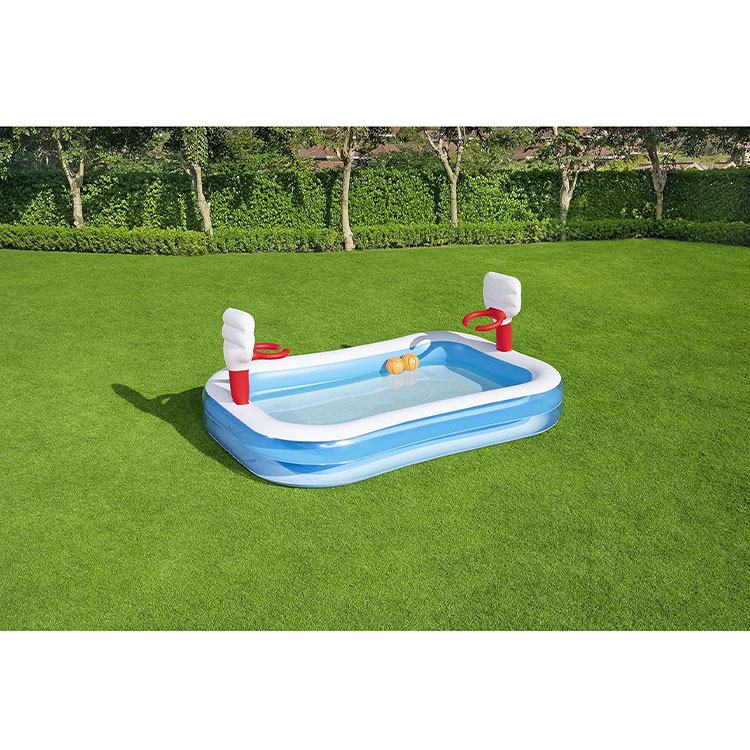 The Splash 'n' Play Basketball Pool is the perfect inflatable toy for kids and adults. It's a pool and bathtub that's easy to store, suitable for play and fun, for kids and friends. They enjoy it with family and friends.