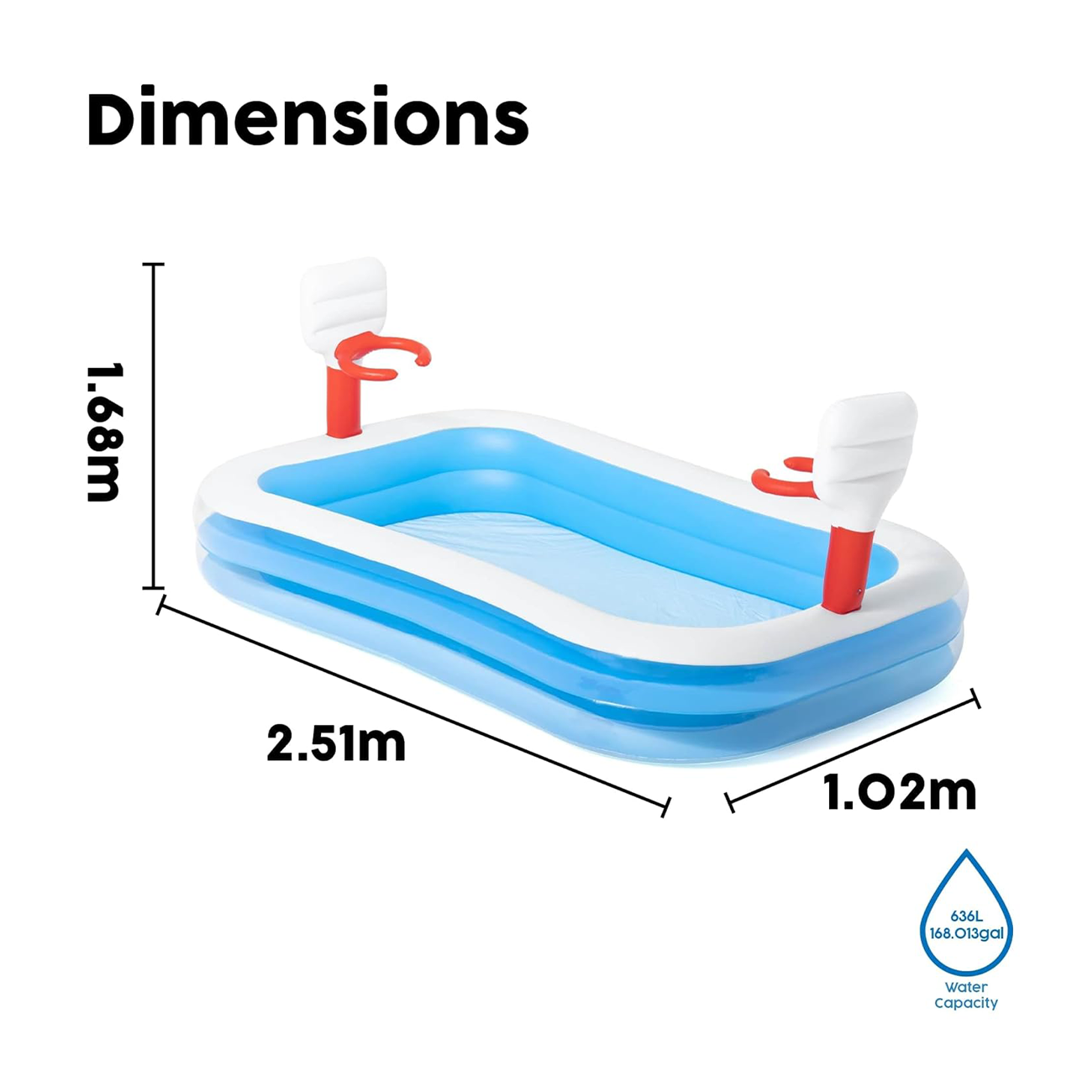 Product Dimensions (cm): 251*168*102 | Designed Water Capacity: 636L (168gal)