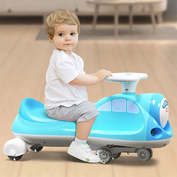 A spaceship in the shape of a train.Self-propelled.The child simply places his feet on the footrest and moves the wheels.Easy to use indoors and outdoors.It has sounds and lights.