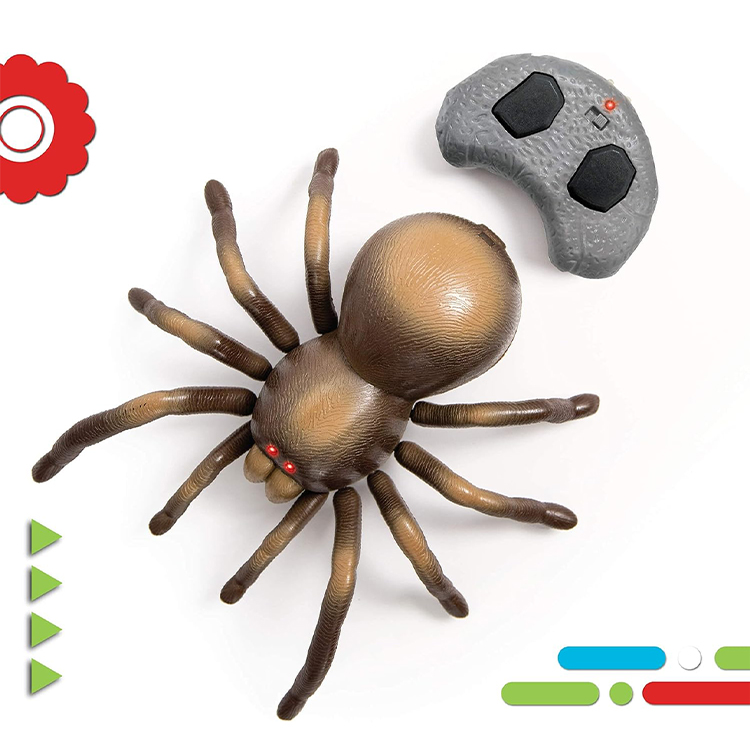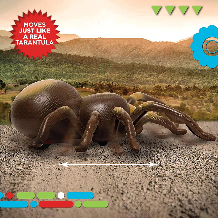 Scare friends and family with the realistic appearance of the remote-controlled tarantula and its lifelike movements! This remote-controlled toy features a built-in universal wheel spin, sending it hurtling across the floor, complete with waving legs!