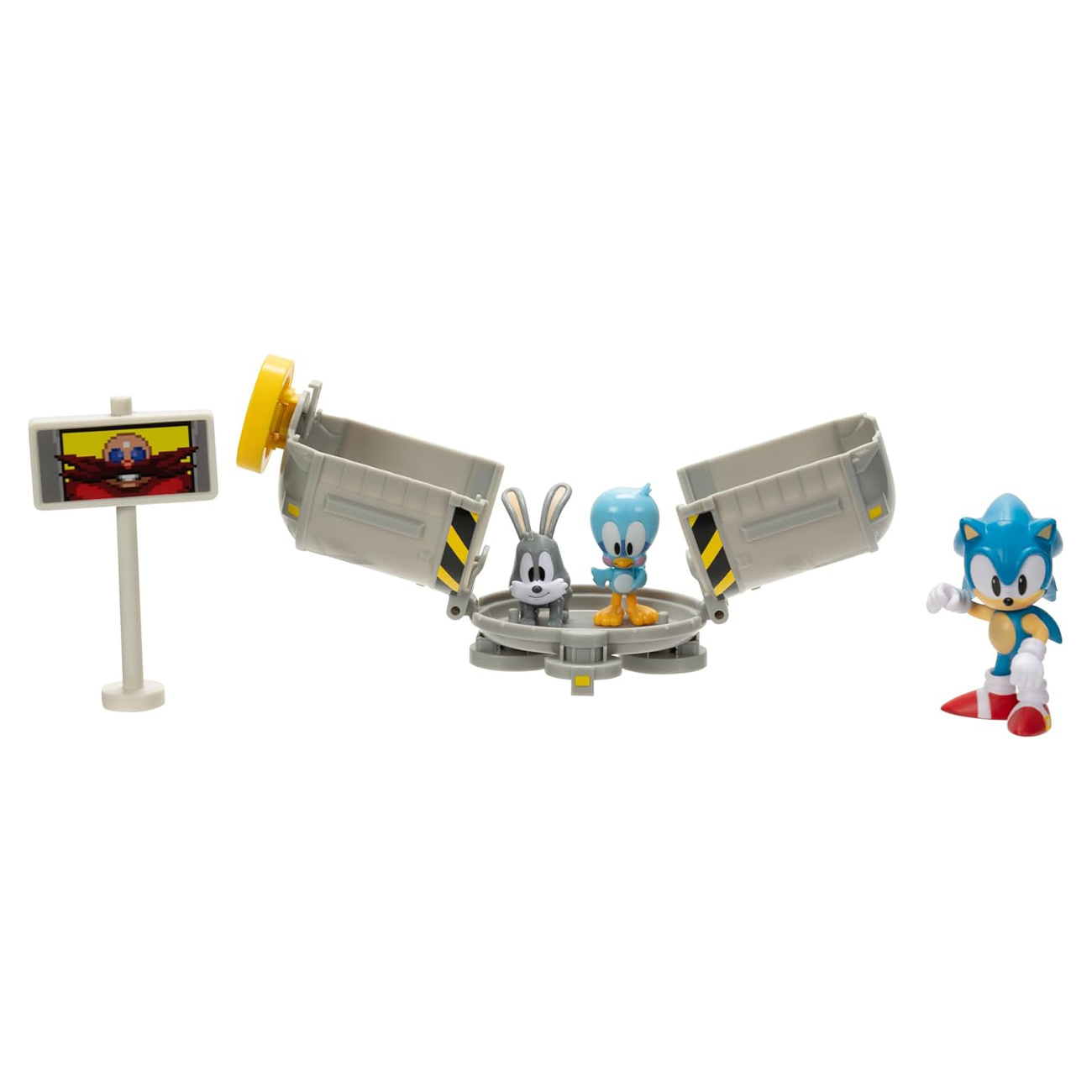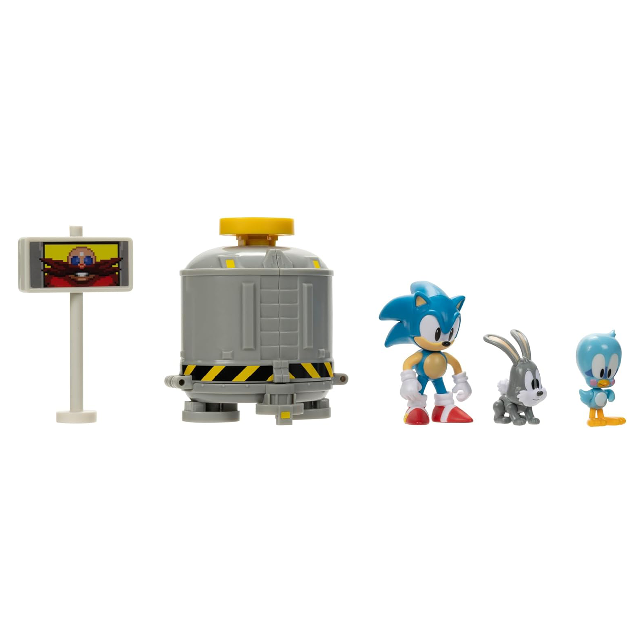 The set includes a 2.5-inch classic Sonic figure, Flicky and Pooky figures, a goalpost, and a capsule.