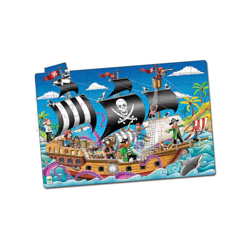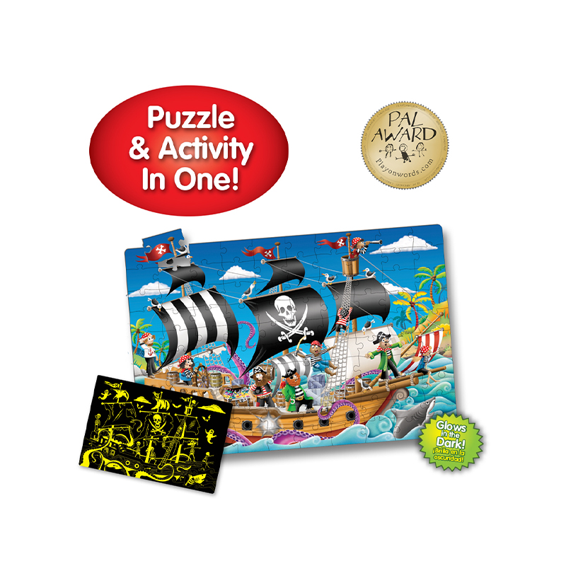 Welcome, friends! Get ready for an educational journey! This 100-piece Pirate Ship Puzzle from Learning Journey is perfect for preschoolers. During the day, the puzzle features a fun pirate scene. At night, the puzzle lights up with a spooky pirate glow, with the scene changing when over 30% of the puzzle glows in the dark. Make learning fun by inspiring your child's imagination and encouraging them to play with this classic pirate-inspired floor puzzle! Are you looking for a safe, fun, and educational preschool toy? Is your child your first treasure hunt partner? Then the Learning Journey Pirate Ship Puzzle is perfect for you! Suitable for boys and girls aged 3 and up.